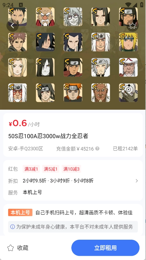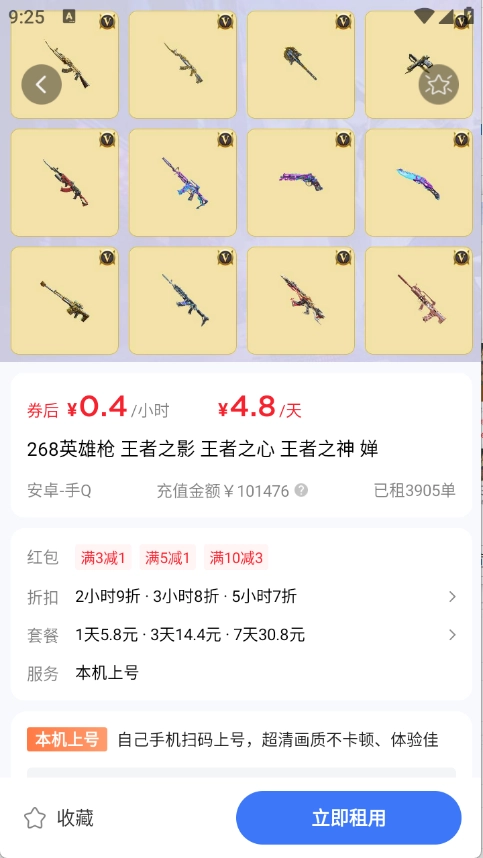 4、找到需要的游戏账号并进入其详情页面,点击“立即租玩”按钮就可以了。