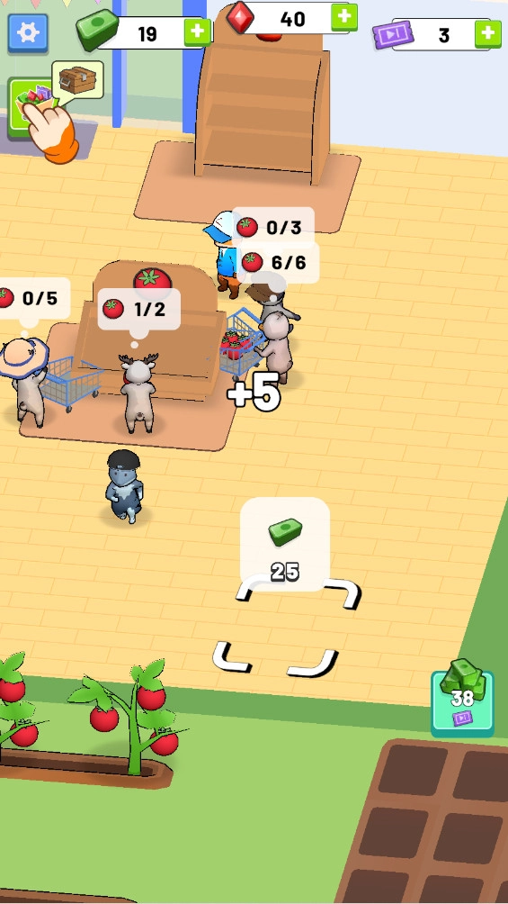 留意屏幕上动物顾客头顶的对话气泡,它们会提示顾客想要购买的商品类型,及时补充货架上的对应商品可以提升顾客的满意度,获得更高的收益。
