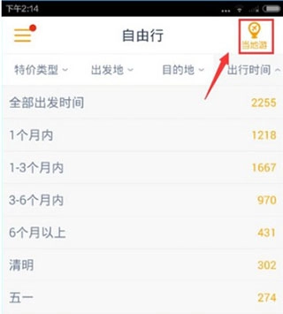 6、点击右上边的当地游,即可了解当地游的信息,让你对当地的一些景点更加的了解。
