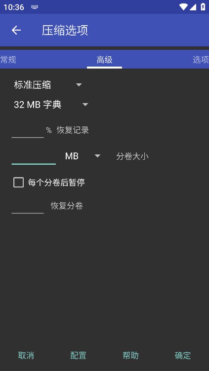 6. 可以设置分割卷压缩文件的大小,以及要恢复的卷的数量。支持每个压缩卷创建后自动暂停,支持显示压缩时间和压缩名称。