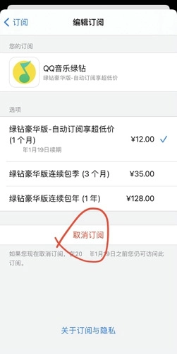 5、当弹出编辑订阅的界面时,我们能在底部找到用红色字体标注的“取消免费试用/取消订阅”按钮,点击该按钮就能取消这项服务的订阅。