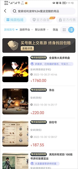 3、找到合适的游戏账号后,点击进入商品详情界面