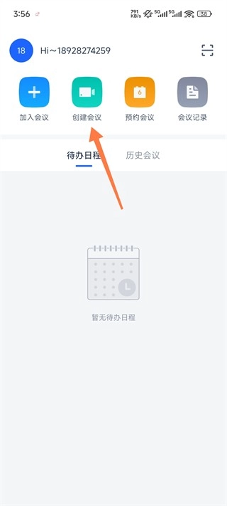 1、打开讯飞会议,进入首页,用户可创建会议、加入会议、预约会议以及查看会议记录等,点击创建会议;