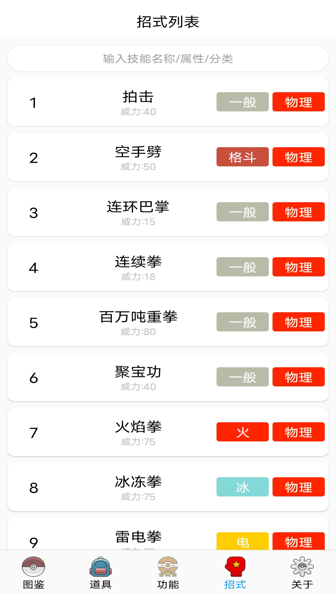 2、招式列表:包含了全部的宝可梦技能;