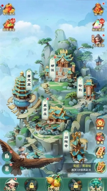 游戏运用Q版美术风格,把传统武侠元素和现代萌系设计巧妙结合,构建出一个兼具经典韵味与新颖感、满是趣味的武侠天地。