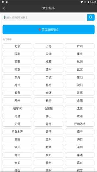 3、在这里输入城市的名字或简称就可以快速添加城市了;