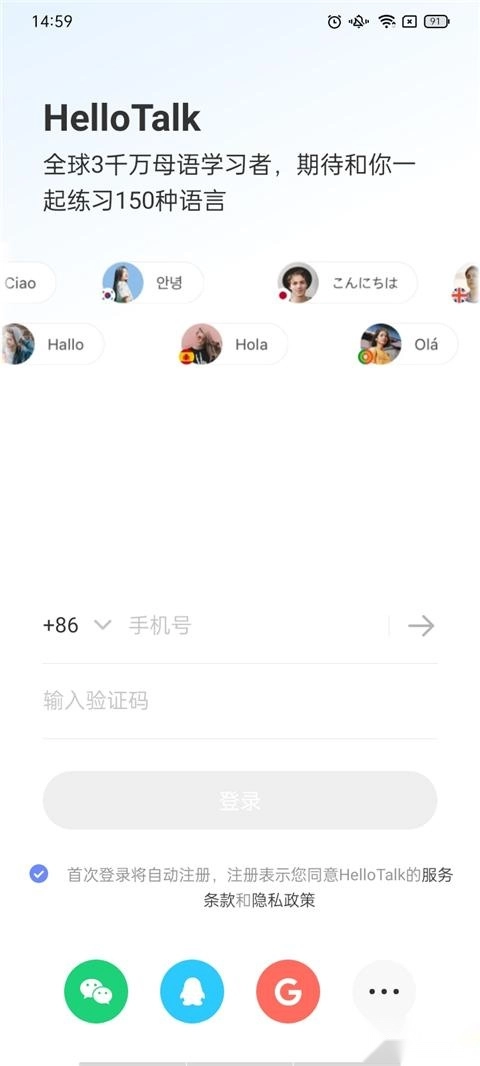 1、安装HelloTalk中文版,随后打开该软件,可通过微信、QQ、邮箱等方式完成登录操作;