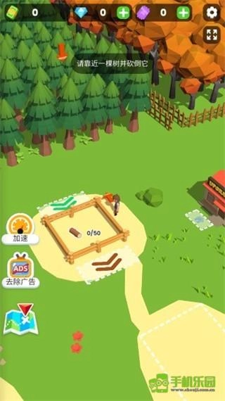 2、移动人物到树林中,靠近一棵树将它砍倒;