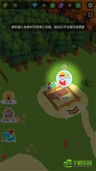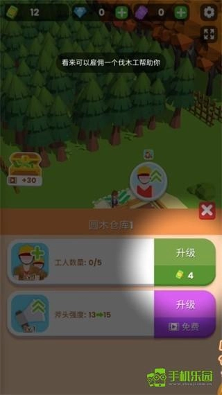 4、钞票足够时,点击仓库升级界面,接下来可以雇佣一个伐木工帮助你;