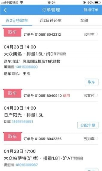 3、了解每个租车订单的信息,查看订单的完成进度。