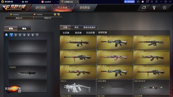 4、点击个人仓库,可以看到各种武器装备都可以使用;