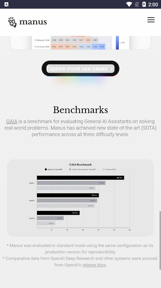 Manus正版是一款对标deepseek的国内领先通用型AI智能化处理工具。与其他AI软件不同,Manus正版手机版可独立完成数据分析、文档制作、代码编写等复杂任务,还能直接输出完整方案。相较于市面上众多AI产品,它的优势颇具吸引力,能切实帮助用户解决各类问题!