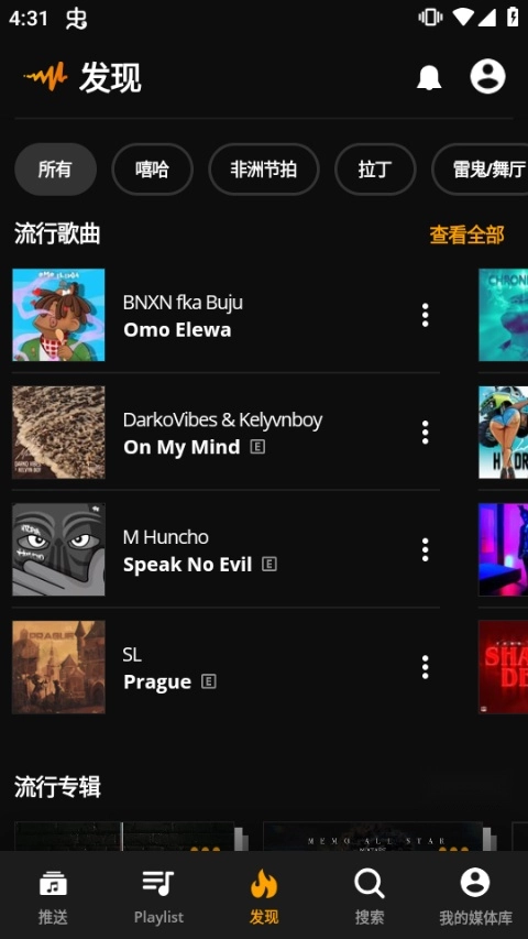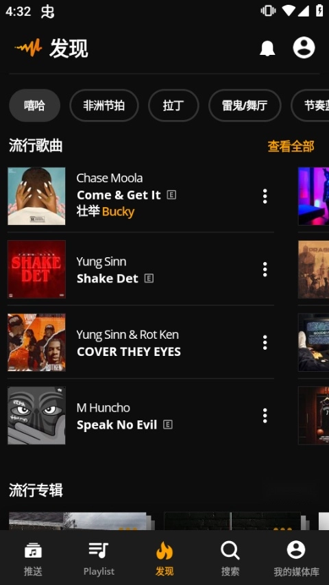 audiomack是一款深受广大用户喜爱的手机音乐播放器,它能为你提供海量的热门歌曲分类资源,让你第一时间获取各地推出的精品专辑,随时收听心仪的歌曲。这里汇聚了多种语种的热门歌曲,还支持你分享自己录制的作品,audiomack为你打造一场精彩的听觉盛宴!