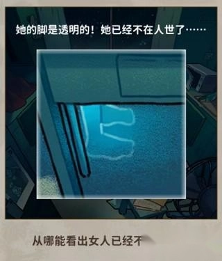 答案:点击桌子下面女子的红色裙子,她的脚是透明的,她已经不在人世了……