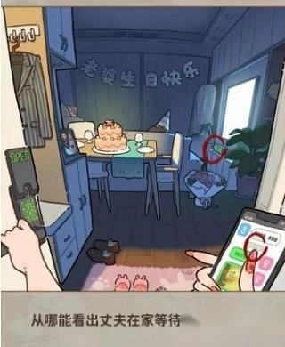 答案:右下角手机上的聊天内容,和右侧窗台边上的闹钟。