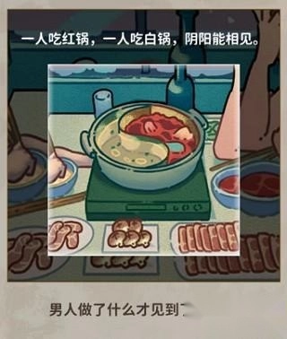 答案:点击桌上的火锅,一人吃红锅,一人吃白锅,阴阳能相见。