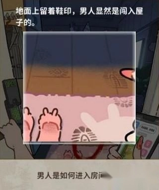 答案:通过点击地上的脚印,能够发现这个男人是闯入屋子的。