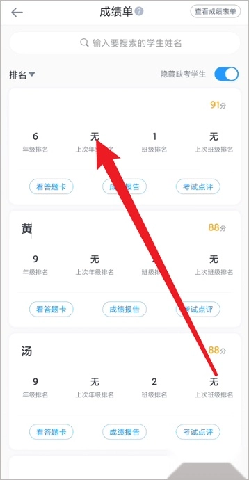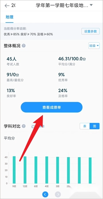 2、如何切换班级查看成绩?