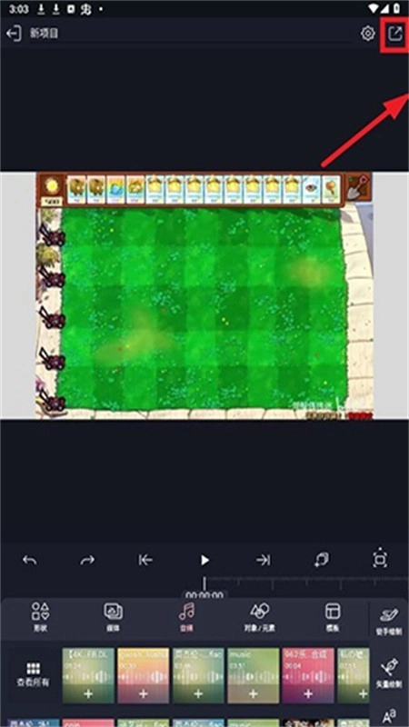 1、进入软件,选择想要添加音频的视频,点击右下角的图案。