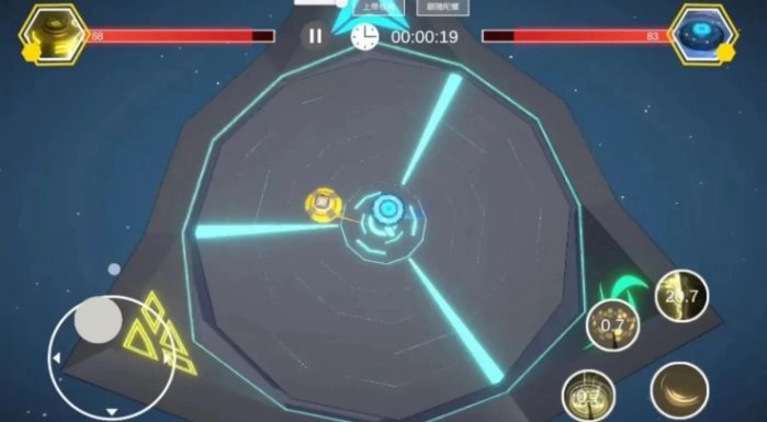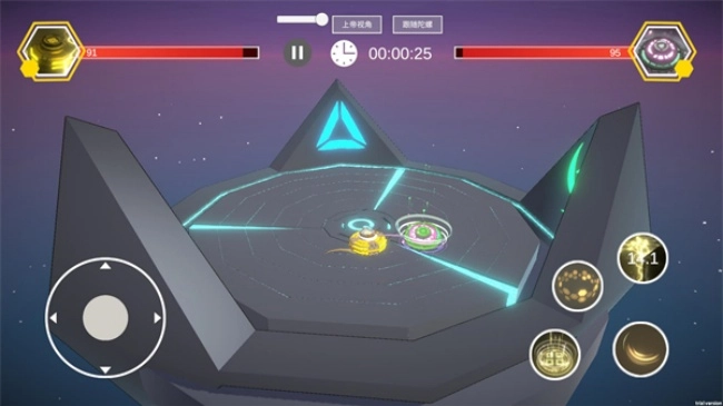 4、选好陀螺后就会正式开始,发射陀螺后屏幕左边控制陀螺的移动,右边是陀螺拥有的技能。