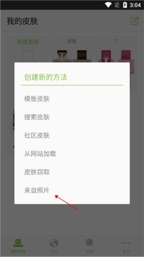 只需要在软件中点击创建皮肤,再选择来自照片,就能够导入图片了。