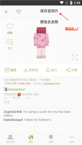 皮肤编辑完成后,可以在游戏中应用,也可以保存到相册后进行发表。