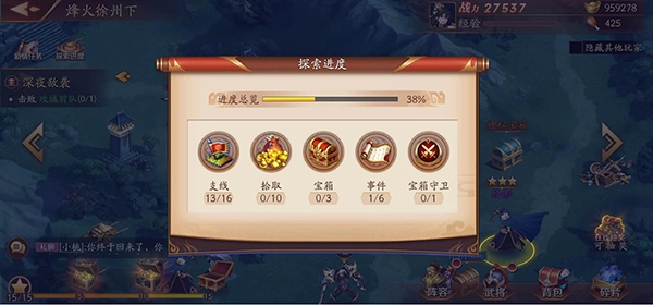 3、每章地图还十分贴心的做了隐藏奖励收集提示,如果没有全部完成的话,就需要主公在地图中仔细查找~