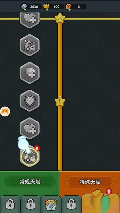 6、提升天赋能够增强角色的各项属性,随着关卡推进到后期,还会解锁装备以及其他相关功能。