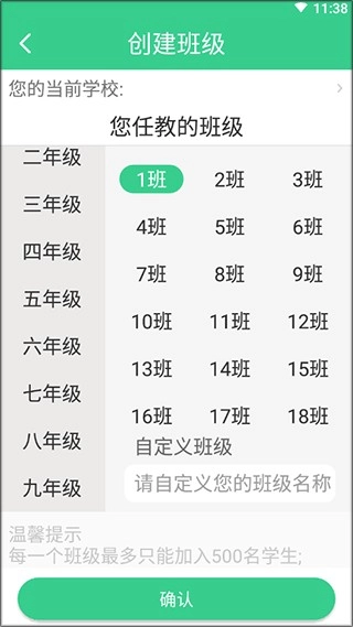 2、选择好学习和班级确定即可创建。