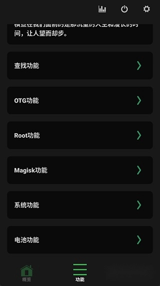5、用户再次点击其功能面板就可以看到其可玩性就更加丰富了,提供了很多root功能、面具功能、系统功能等需要root权限的功能调节
