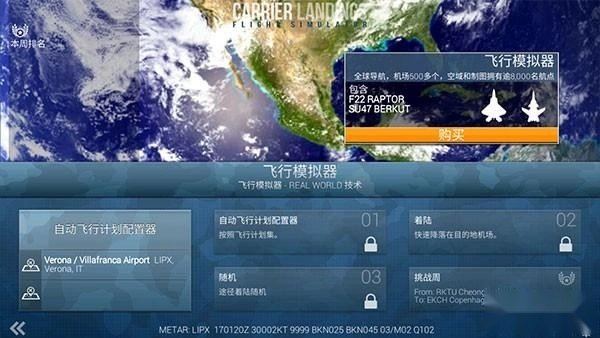 全球导航和飞行计划,包含500多个准确的机场、昼夜循环、实时METAR天气状况、具有超过8,000个航点的航空空间制图。