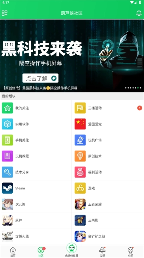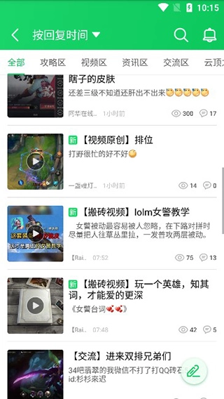 3、在社区版块当中,可以看到众多分区,包括lol、原创技术、王者荣耀等等;