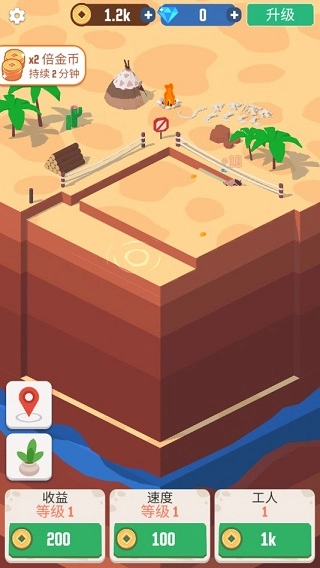 1、打开游戏后,雇佣小人在区域内挖掘土块。