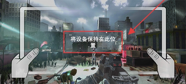 进入游戏后,按照提示【保持设备位置】完成初始引导,进入战斗场景后,借助教学内容快速熟悉操作逻辑。