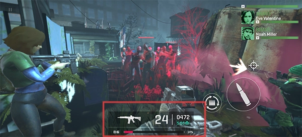 3、战斗时要留意【武器弹药】的剩余量,优先对靠近幸存者的僵尸发起攻击,借助掩体切换武器进行持续输出,以此保护队友。