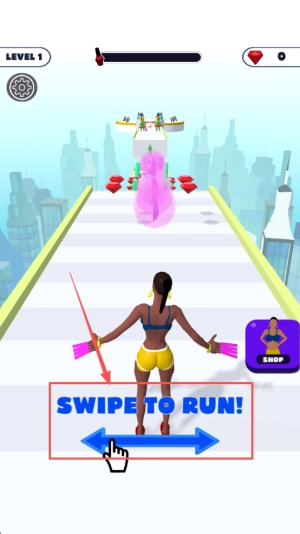 1、进入游戏:首先打开游戏主界面,点击“LEVEL1”,接着按照提示“SWIPE TO RUN”滑动屏幕,即可进入第一关。