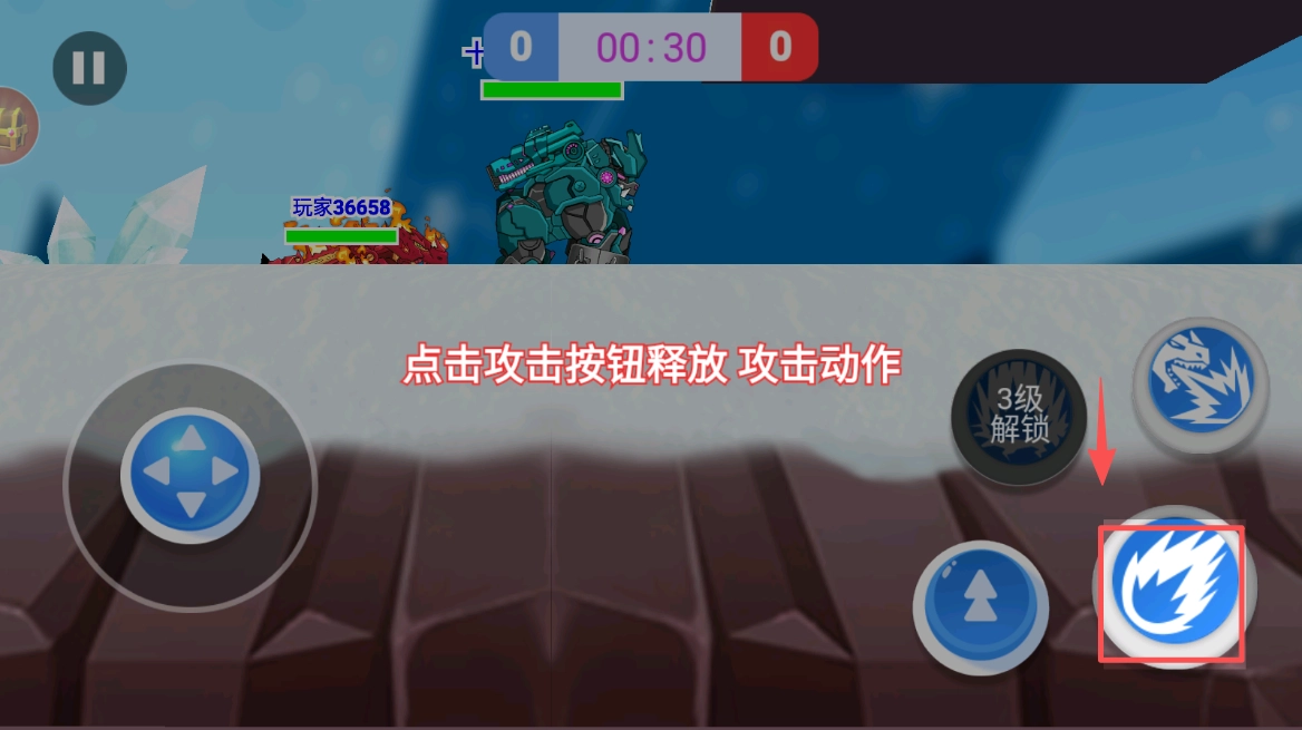 2、然后,滑动方向键控制机甲恐龙移动,避开障碍物,寻找敌人,进行战斗。
