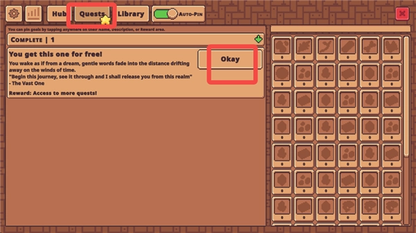 1、进入瓦斯特里亚的回响手机版中,先在【Quests】界面,点击【Okay】。