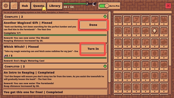 8、完成任务后,该任务进度条会显示绿色,点击【DONE】、【Turn In】结束。