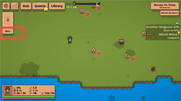6、遇到一个NPC,点击【MEET】按钮。和他进行对话后,得知他要建房子需要一些木材,希望我们帮忙收集一些木材。
