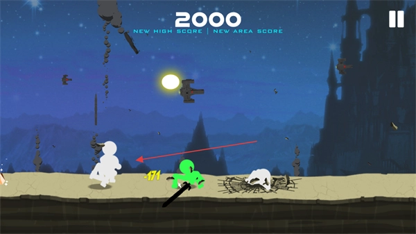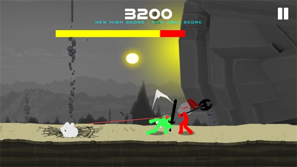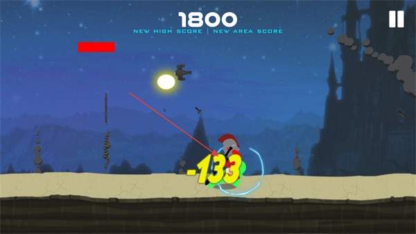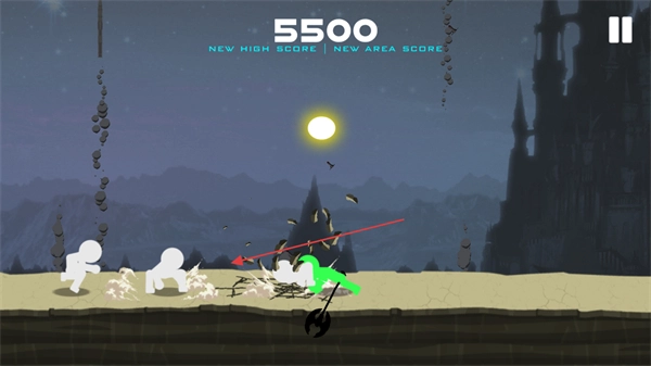 1、控制绿色火柴人对敌方单位发起攻击,造成133点伤害,使分数增加到1800分,以推进游戏进程。