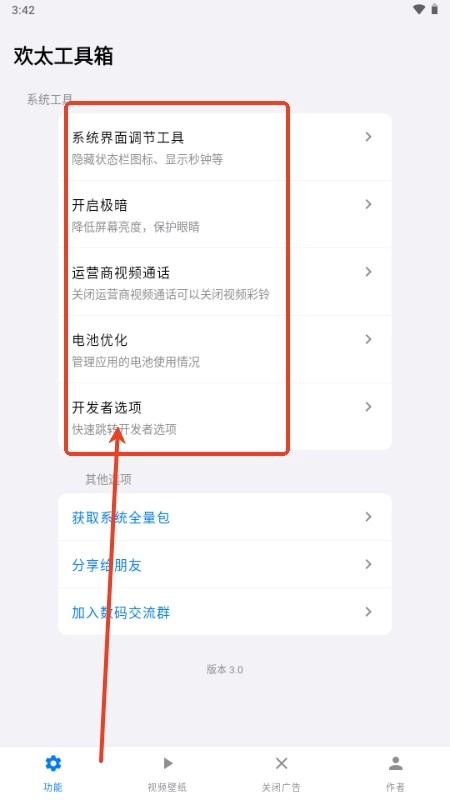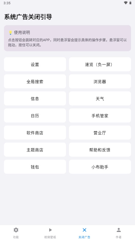 3、聚焦用户高频需求(如关闭广告、优化电池、设置视频壁纸),解决系统自带功能入口深藏的问题。