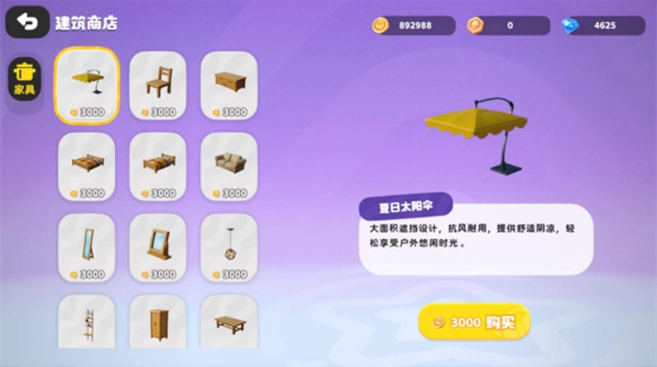 1、自由建造系统:提供数百种家具、装饰与地形组件,支持360度旋转与高度调节,打造个性化空间。