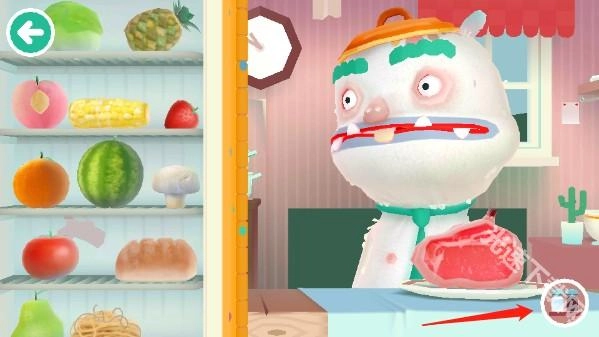 10、接着点击左上角的箭头返回至等待食物的角色处,将食物投喂到他的口中,待其吃完就完成了。