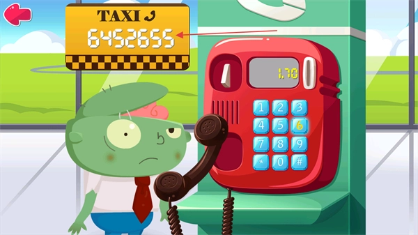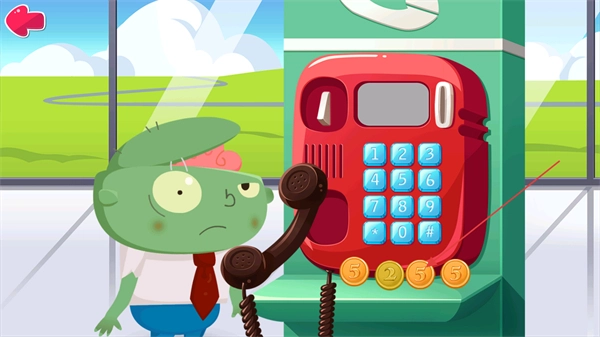2、进入电话操作场景后,将硬币投入电话对应的投币口,完成拨打出租车电话前的准备步骤。