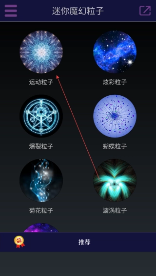 1、打开迷你魔幻粒子世界,点击【喜欢的粒子效果】。