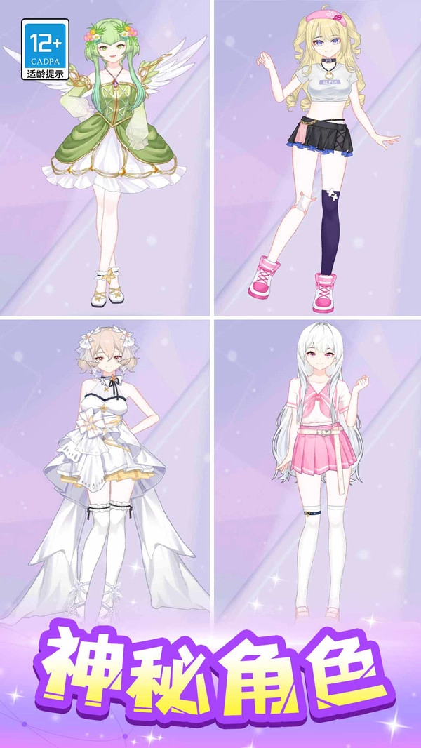 2、神秘角色逐步解锁:神秘角色可逐步解锁,每位角色带来独特基础形象,结合衣橱分类功能,轻松挑选服装饰品,为角色设计耀眼绚丽的装扮方案,带来完美视觉体验。
