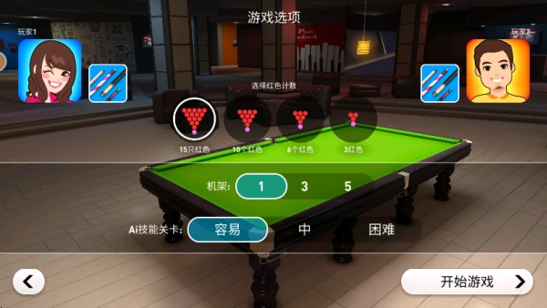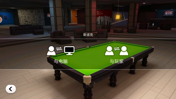 3.如下图所示,点击斯诺克后,玩家可以选择与电脑还是与玩家对决。