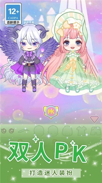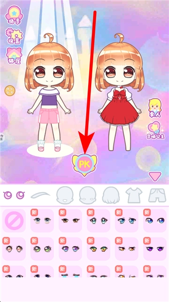 3、完成角色装扮后,点击PK按钮,就能和其他玩家比拼装扮成果,展示自己的创意,在互动交流中感受乐趣,同时让装扮技巧得到提升。