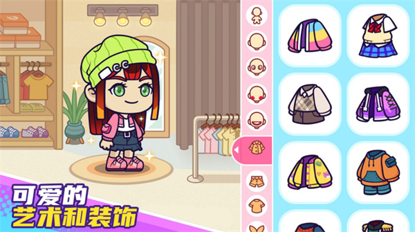 卡通画风超萌,色彩绚丽,场景丰富到超乎想象,从繁华都市到神秘森林,随意穿梭,能自由捏角色、装饰房屋,道具多得挑花眼。还能触发有趣剧情,和小伙伴互动,尽情发挥创意。